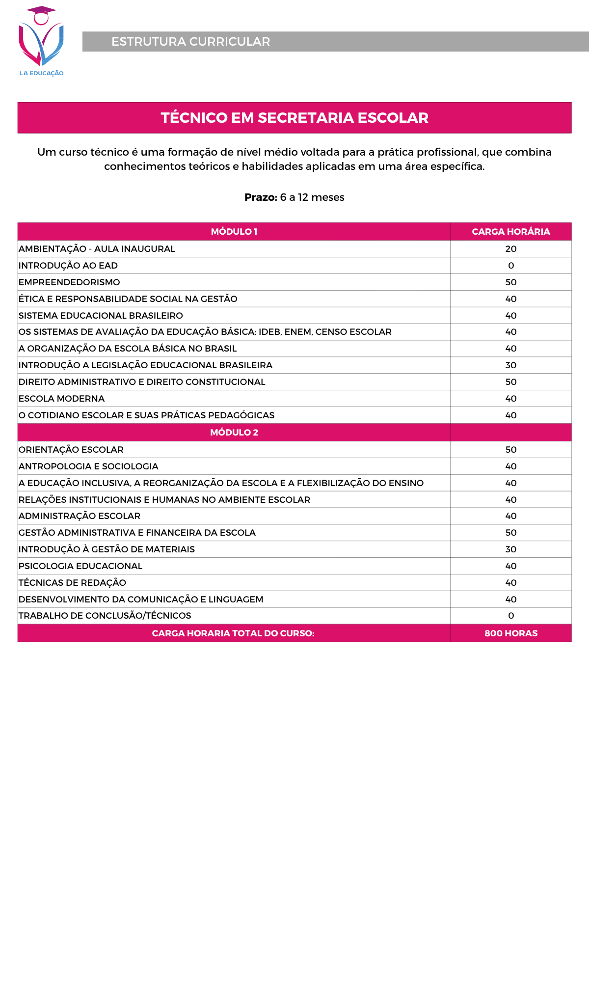 Formação completa entre 6 e 12 meses. Metodologia: O curso é ministrado 100% na modalidade EaD, ou seja,totalmente à Distância, através de um Ambiente Virtual deAprendizagem (AVA), dinâmico e facilitador. O aluno contará comvídeos, materiais didáticos e acompanhamento pedagógico durantetodo curso.