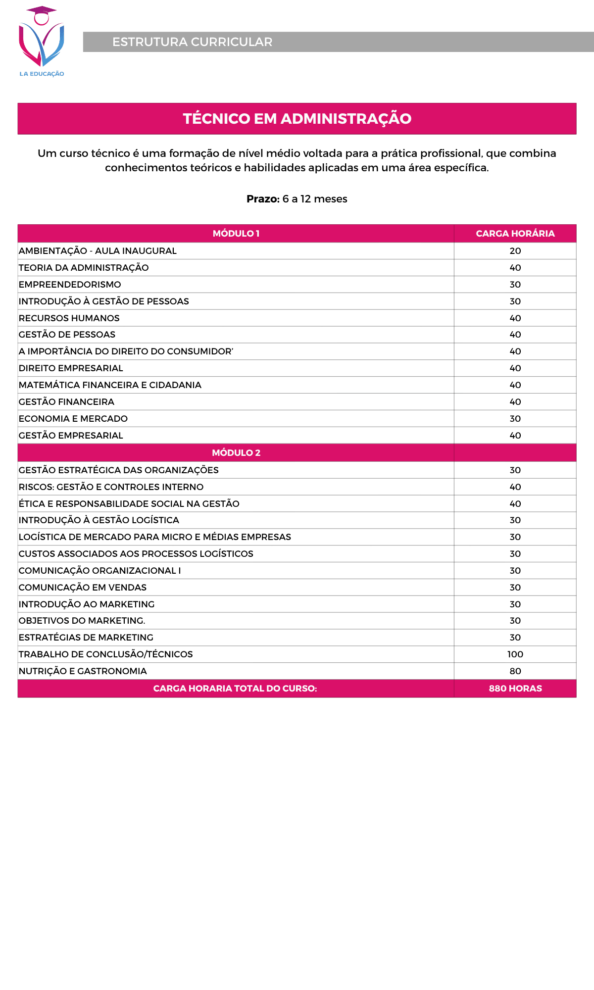 O curso de Técnico em Administração é destinado a concluintes/portadores de certificado de ensino médio ou equivalente, com vistas a formar profissionais criativos e críticos, com competências técnicas que lhe possibilitem apoiar e atuar no desenvolvimento de processos administrativos e nas tomadas de decisões em diversas áreas da gestão em organizações, incentivando o aprendizado contínuo e a observação dos princípios da ética e da responsabilidade social.